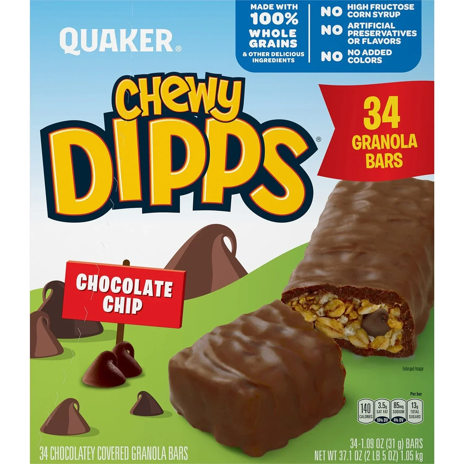 Quaker Chewy Dipps Granola Bars, Chocolate Chip, 34 pk.