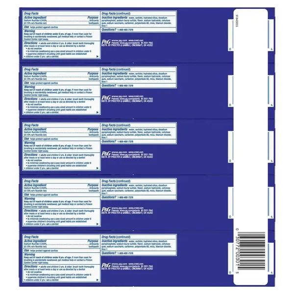 *Note: The whitening effects of the toothpaste are due to the removal of surface stains.**Comparison based on the volume of toothpaste in the Value 5-Pack versus six regular-sized tubes.