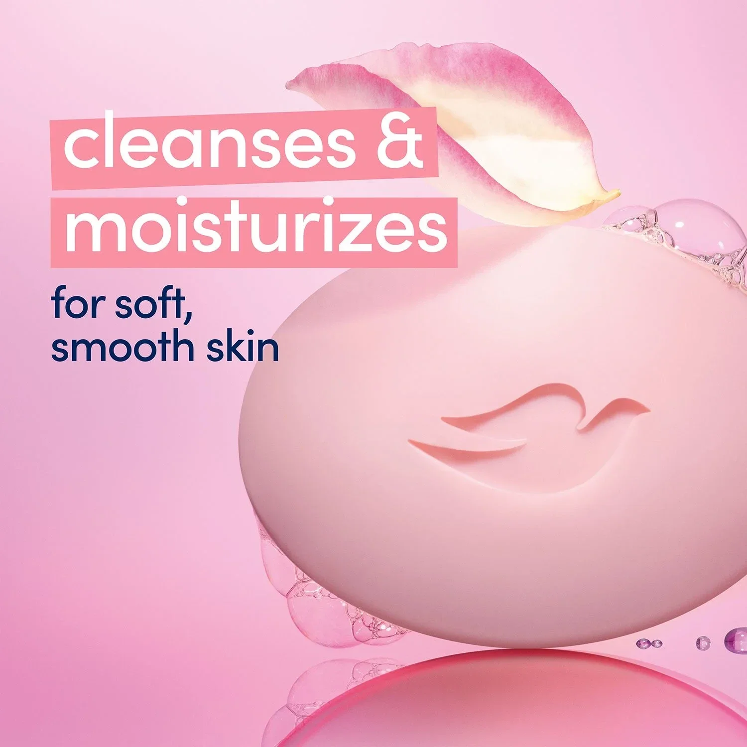Simply massage the Dove Pink Beauty bar between your hands and smooth the cleansing lather over your skin before rinsing away.