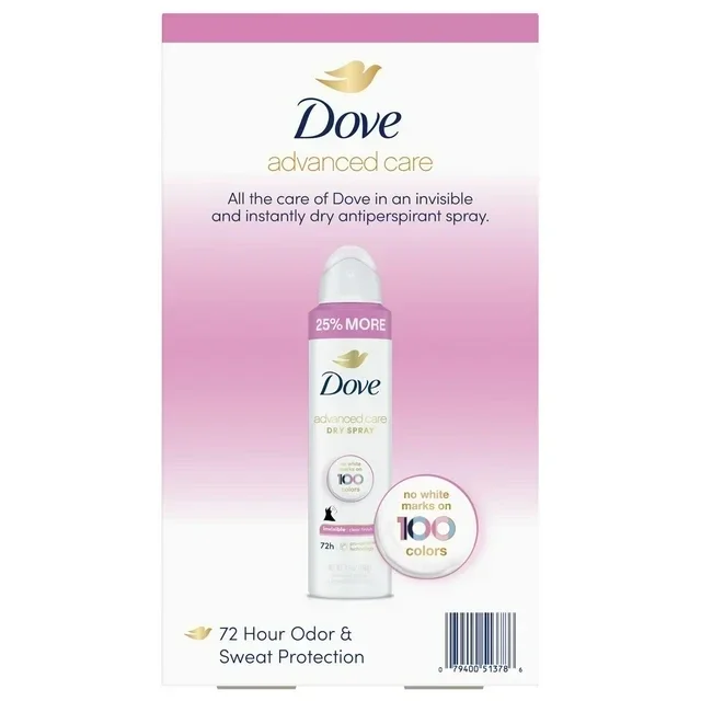 This 72-hour antiperspirant provides exceptional odor and underarm sweat protection, by quickly drying on your skin so you can shave, apply antiperspirant deodorant and start the day with peace of mind. Globally, Dove does not test on animals and is PETA Approved. Plus, this antiperspirant deodorant spray is PETA Approved Vegan. *Do not use on broken skin